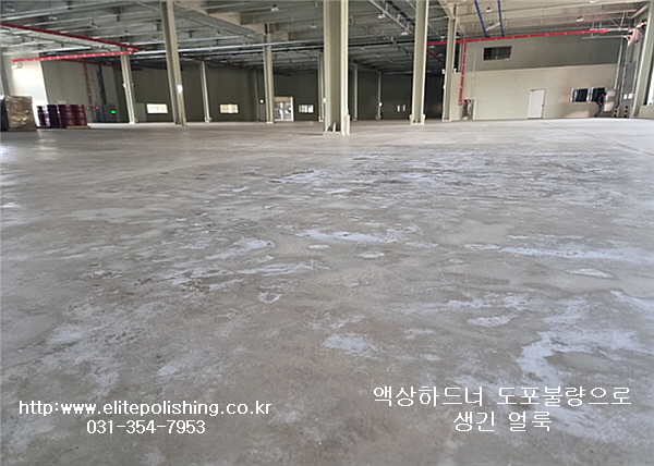타업체 시공 면처리 및 액상하드너 시공불량으로 신규 공장 이전 중