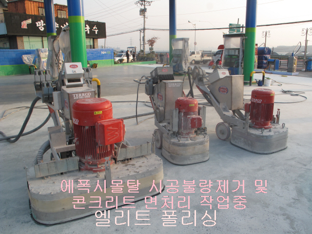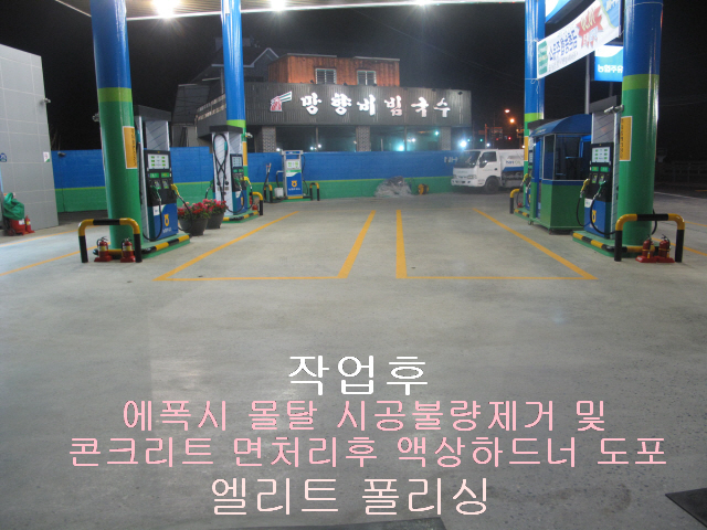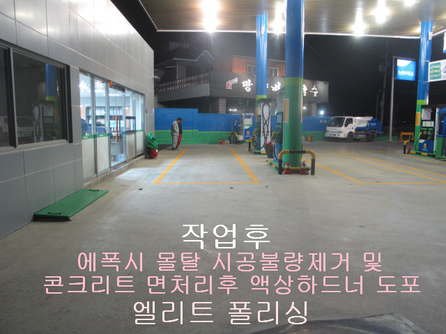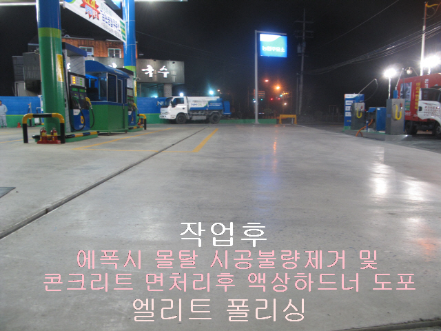 김포시 주유소 에폭시몰탈 시공불량 제거 및 면처리후 액상하드너작업