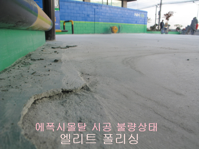 김포시 주유소 에폭시, 몰탈 시공 불량 제거 및 면처리 후 액상하드너 작업