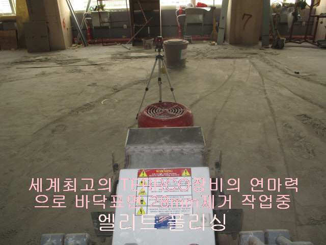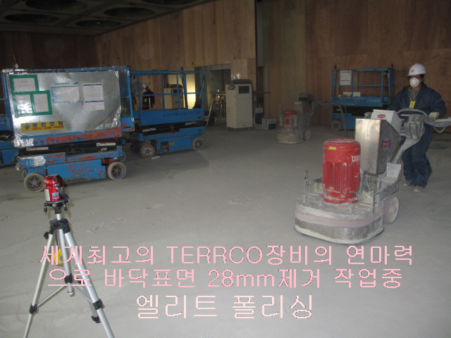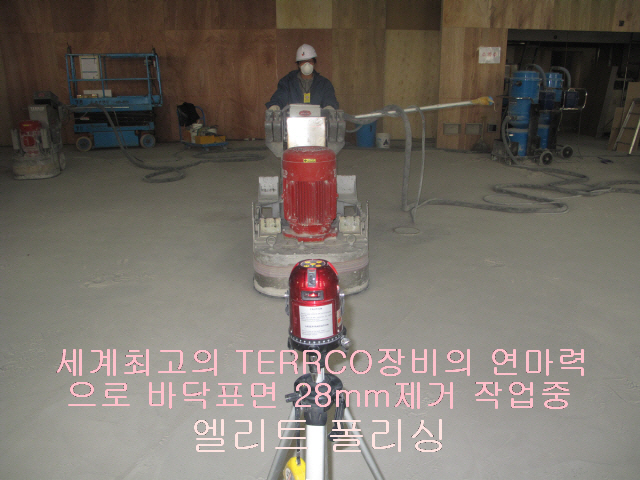세계최고의 연마력 장비 Terrco 바닥표면 28mm제거후 수평작업 국내 우수한