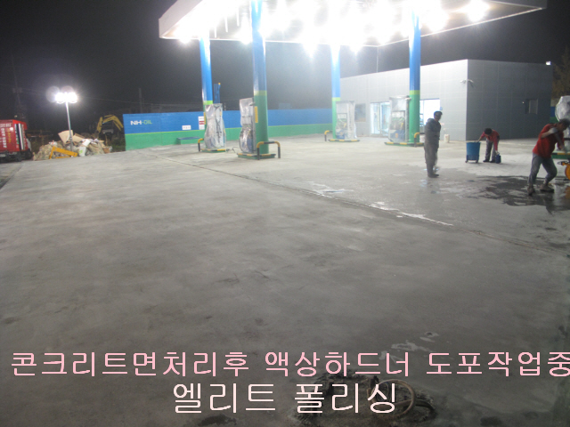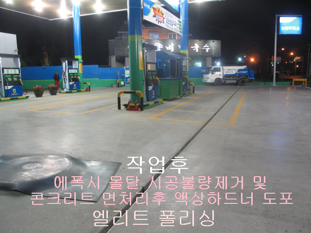 주유소 에폭시몰탈 시공불량 제거 및 면처리후 액상하드너작업