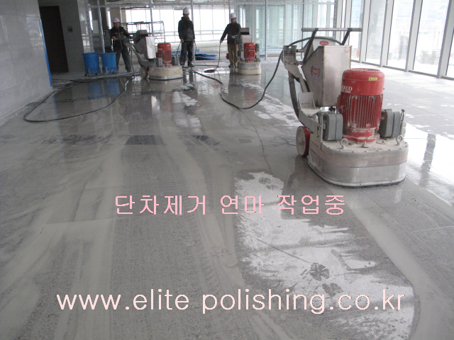 판교 (주) 포스코건설 테크노밸리 신축현장 1층로비 7,8,9,10층 엘리베이트 로비 화강석 단차제거 1,700m2 연마광택 …